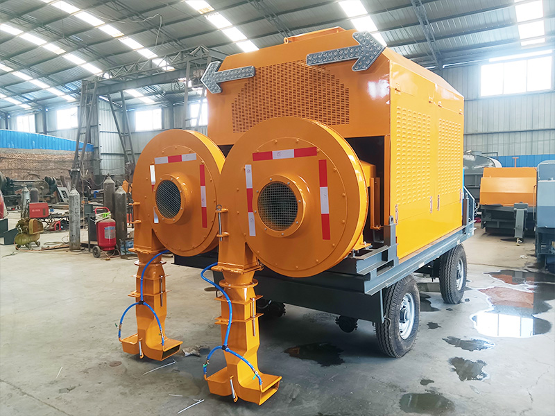 高速公路專用風(fēng)機(jī)組。車載高壓雙風(fēng)機(jī)組120千瓦、冬季可吹雪夏季可霧化噴水吹掃。設(shè)計(jì)出風(fēng)口在地面上300mm以下吹掃風(fēng)柱、以避免吹起粉灰造成安全隱患。機(jī)組出風(fēng)口旋角與高低雙向前后可調(diào)。